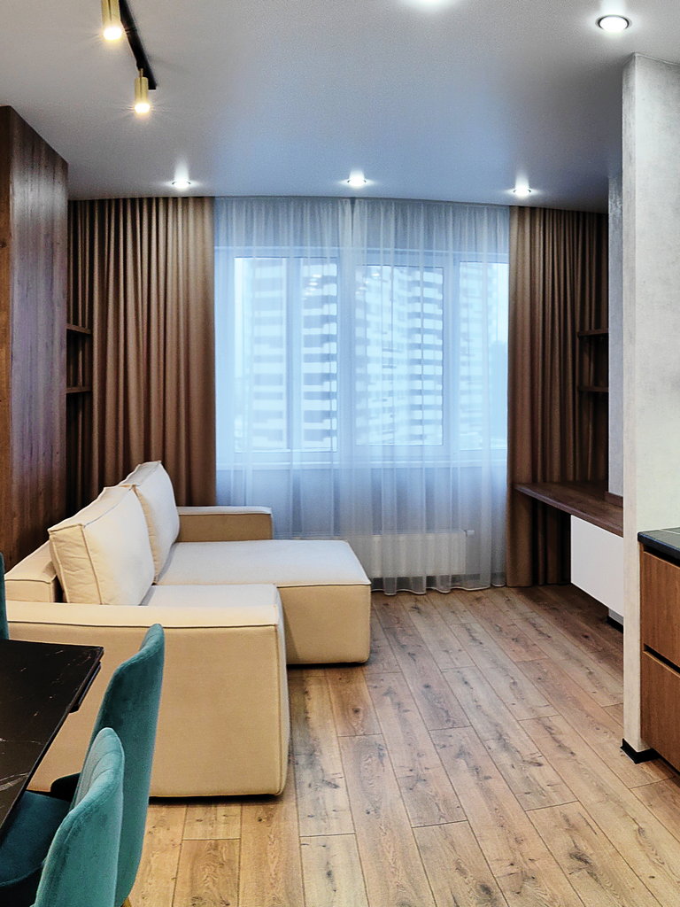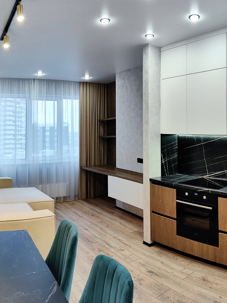 Для того, чтобы Вы могли полноценно оценить качество наших квартир, мы подготовили для Вас шоурумы в чистовой отделке. В чистовую отделку как минимум входят: полы ламинат, натяжные потолки, высококачественные обои, дизайнерские двери, плитка в ванной и туалете. Более подробно о чистовой отделке уточните в отделе продаж по тел. (8552) 928-928.